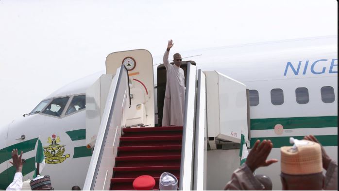 The President is being accompanied by the governors of Zamfara, Ebonyi and Ondo states as well as key cabinet Ministers and would transit through London on his way back to the country.